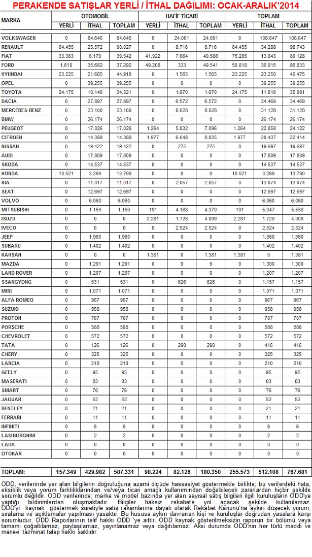 2015 OCAK AYININ EN ÇOK SATAN ARABALARI