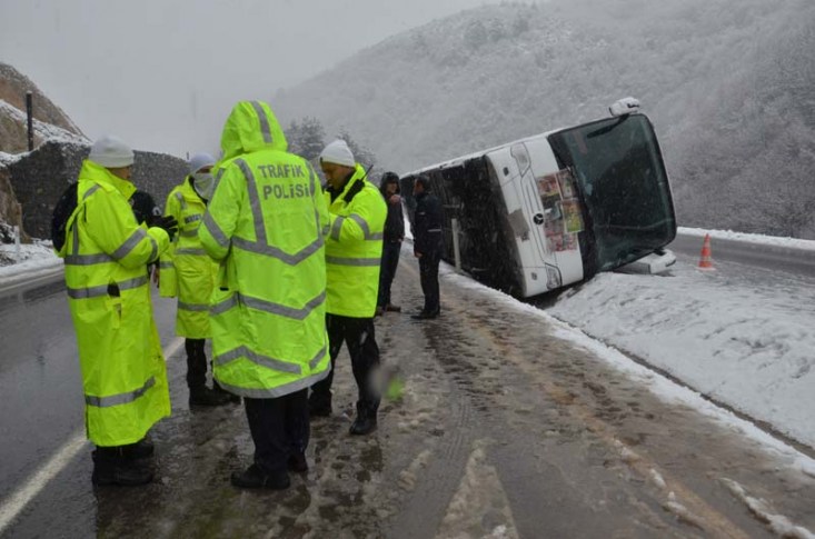 gitmek için yola çıkan şehirlerarası otobüs, 11 yolcusuyla yan yattı. Kar