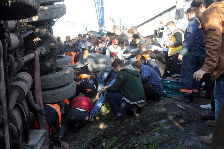 üzerine devrildi. Devrilen kamyonun altında kalan anne ve kızı uzun uğraşlar