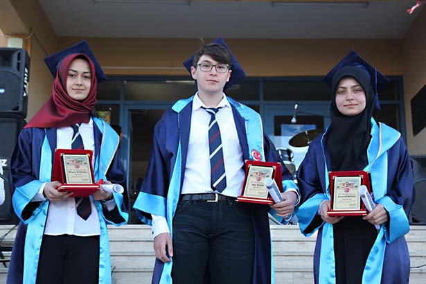 İlçe Milli Eğitim Müdürü Mehmet Özdemir de konuşmasında "Eğitim ömür boyu devam eden bir süreçtir. Eğitimin bugüne kadar olan kısmını başarıyla tamamladınız. Dürüst, çalışkan ve üretken bir insan olmak için gayret gösterin. Topluma faydalı bireyler olacağınıza inanıyorum" diyerek öğrencileri ve ailelerini tebrik etti. Okul birincisinin konuşmasından sonra protokol üyeleri okul birincisi Anıl Tekin, okul ikincisi Büşra Altunay ve okul üçüncüsü Derya Dombaycı'ya diplomalarını takdim ettiler.