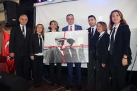 Belediye Başkan Aday Adayı Erol Çivici'ye teşekkür ederek, bir tablo hediye etti. Konuşmanın ardından