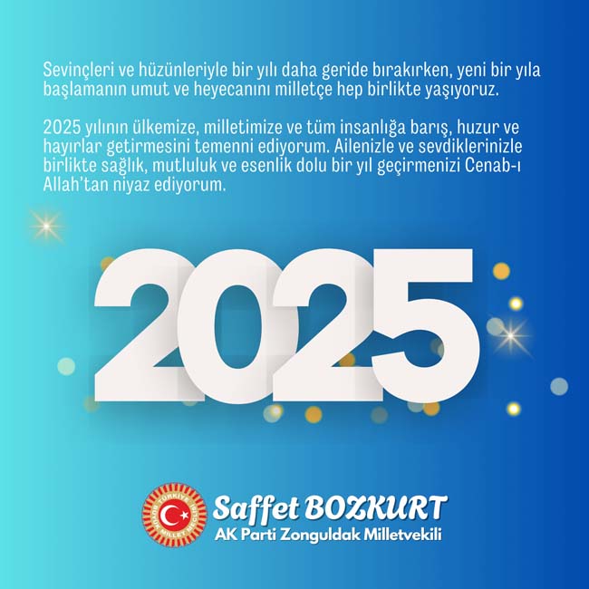 AK Parti Zonguldak Milletvekili Saffet Bozkurt, "2025 yılı; huzur, mutluluk ve sağlık dolu bir yıl olmasını diliyorum"