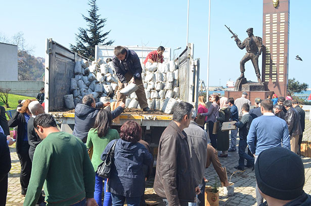Zonguldak Valiliği önünde resim sergisi ve vatandaşa ücretsiz fidan dağıtımı