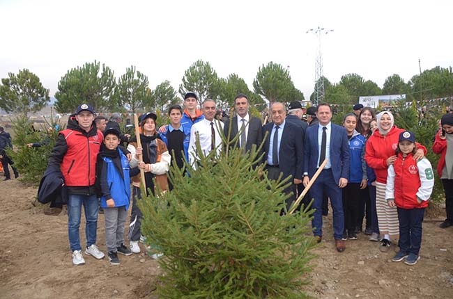 Zonguldak’ta Milli Ağaçlandırma Günü kapsamında il bazında çok sayıda fidanı toprakla buluşturduklarını ifade eden Bayraktar; “Bu kapsamda; Milli Ağaçlandırma Gününde ilimiz genelinde;2020 yılında 145 bin, 2021 yılında 168 bin, 2022 yılında 175 bin ve 2023 yılında 192 bin olmak üzere toplam 680 bin fidanı toprakla buluşturduk. Hamdolsun dikmiş olduğumuz fidanların yaklaşık %98‘i vatan toprağına tutunmuş, ormanlarımıza kazandırılmıştır. Bizler de Tarım ve Orman Bakanlığımıza bağlı tüm kurumlarımızla birlikte, Sayın Cumhurbaşkanımızın kamuoyu ile paylaştığı Türkiye Yüzyılı hedefleri doğrultusunda vizyonumuzu güncelledik. Artık Cumhuriyeti’mizin ikinci yüzyılında bölgemize ve dünyamıza söyleyecek daha çok sözümüz var. Türkiye Yüzyılı, tarım ve ormancılığın da yüzyılı olacaktır. Orman Genel Müdürlüğümüz 1839’ dan beri asırlık tecrübeye sahip kurumsal kapasitesi, yetişmiş insan kaynağı, güçlü teşkilat yapısı, bilgi ve teknolojiyi benimseyen yönetim anlayışıyla Türkiye Yüzyılı vizyonunda yerini alacaktır. Bu çerçevede, 11 Kasım Milli Ağaçlandırma Günü’nü, gelecek nesillere karşı sorumluluğumuzu hatırlama ve hatırlatma günü olarak da değerlendiriyoruz. Orman; yeşilin, nefesin, yaşamın adı, huzurun, umudun, dostluğun sevdasıdır. Bizler, fidanlarımızı ayrı bir heyecanla toprakla buluşturan, can suyunu umutla veren, ormanlarımızı büyük bir gayretle, adeta vatan gibi koruyan bir milletin evlatlarıyız. Biz ağaca yalnızca; “Kapının eşiği, çocuğun beşiği, kâğıdın hamuru” olarak bakmıyoruz, odun hammaddesi üreten bir kaynak da olarak görmüyoruz. Zira orman ekosistemi, içerisinde başlı başına bir dünya barındırıyor! Önceki yıllarda farklı başlıklar altında gerçekleştirdiğimiz 11 Kasım Milli Ağaçlandırma Günü’nün bu yılki teması, Bakanlığımızca ‘Geleceğe Nefes, İnsanlığa Nefes’ olarak belirlendi. Bu yıl, 7’den 70’e hepimizin dikeceği binlerce fidan İnsanlığa, Gezegenimize ve Ülkemize nefes olacak. Bugün sadece burada değil Bartın’da 3, Karabük’te 7 ve Zonguldak’ta 7 olmak üzere 17 ayrı lokasyon da 191 dekar alanda aynı anda 23 bin 500 adet fidanı aynı anda gelecek nesillerine eşsiz armağanlar bırakmak için toprakla buluşturuyoruz” şeklinde konuştu.