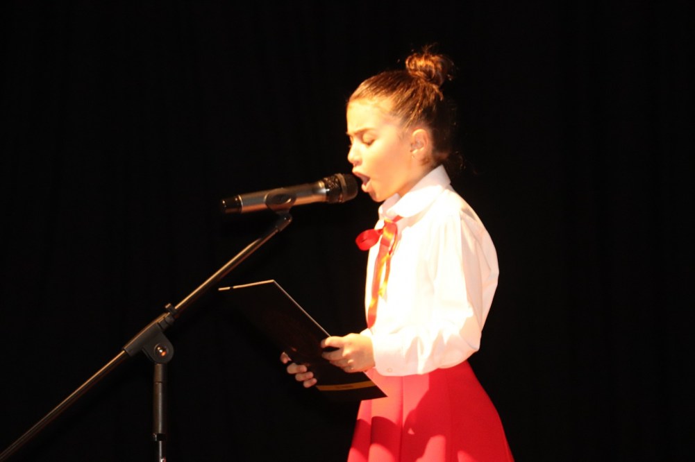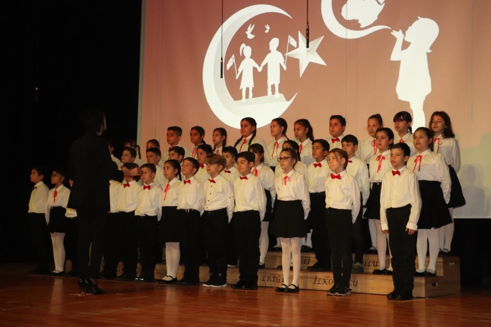 Programda Ereğli İlkokulu 23 Nisan Çocuk korosu tarafından 23 Nisan temalı şarkılar seslendirilmesinin ardından, Öğrencilerden Nazlı Karakuş “Egemenlik Yolu” şiirini okudu.