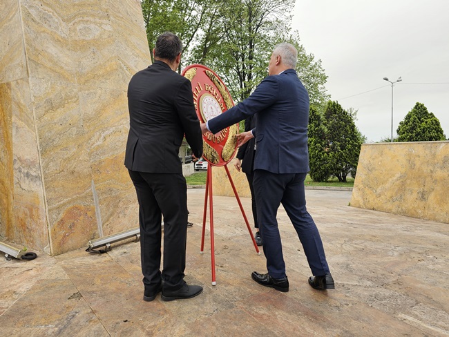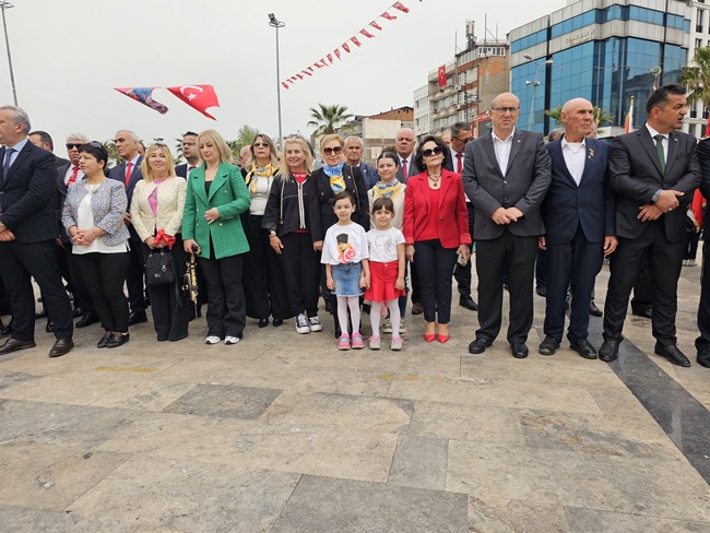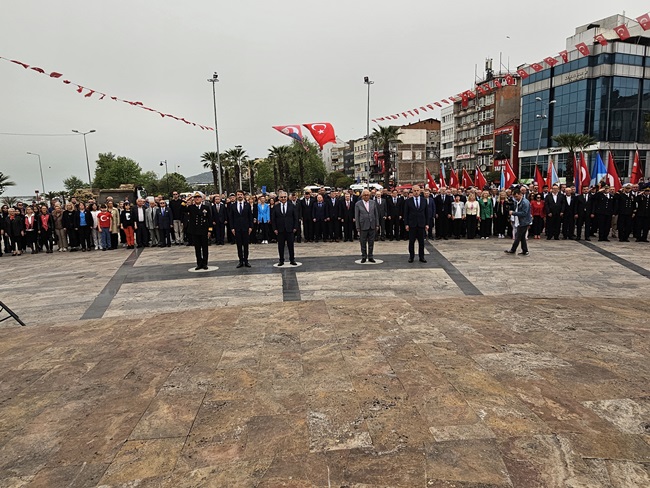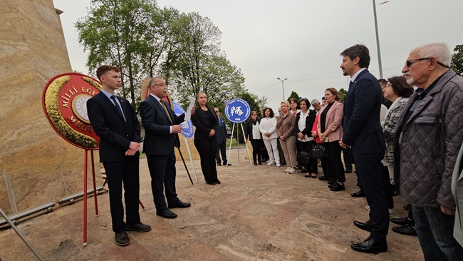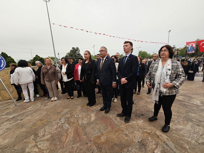 Sabah saatlerinde Devrim Bulvarı Atatürk Anıtı önümde İlçe Milli Eğitim Müdürlüğü çelengi Milli Eğitim Müdürü Hakan Akgül tarafından Atatürk Anıtı’na sunuldu.