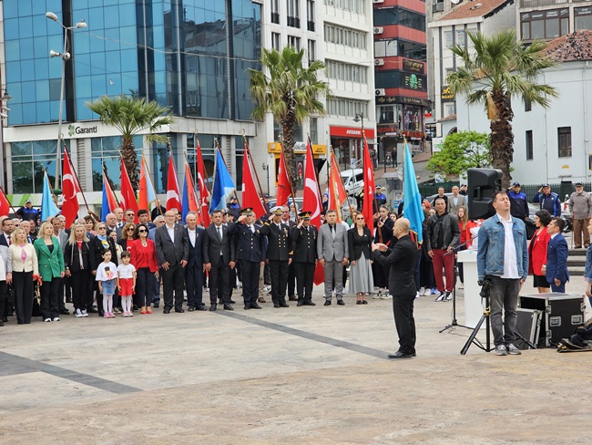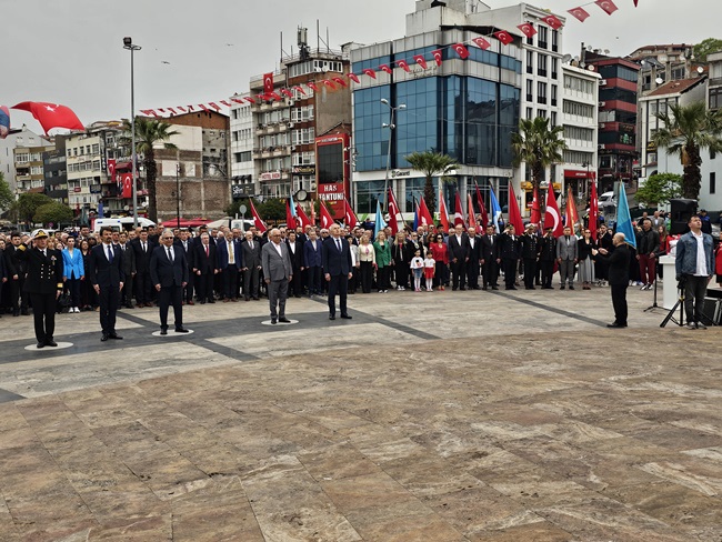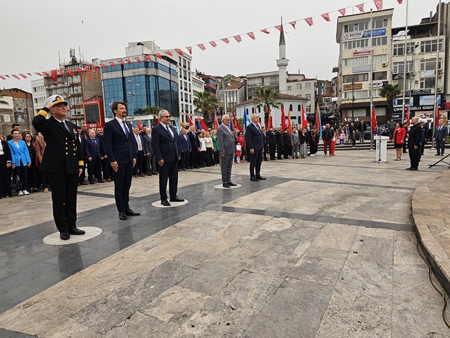Devrim Bulvarı Atatürk Anıtı önünde gerçekleştirilen programa; Karadeniz Ereğli Kaymakamı Mehmet Yapıcı, CHP Zonguldak Milletvekili Dr. Eylem Ertuğ Ertuğrul, Karadeniz Bölge ve Garnizon Komutanı Tuğamiral Niyazi Uğur, Karadeniz Ereğli Belediye Başkanı Halil Posbıyık, Erdemir Genel Müdürü Aşkın Peker, Daire Müdürleri, Siyasi partilerin ilçe başkanları, Belediye ve İl Genel Meclis üyeleri, STK temsilcileri, okul müdürleri, öğretmenler ve vatandaşların katıldığı tören, saygı duruşunda bulunulması ve İstiklal Marşı’nın okunmasıyla sona erdi.