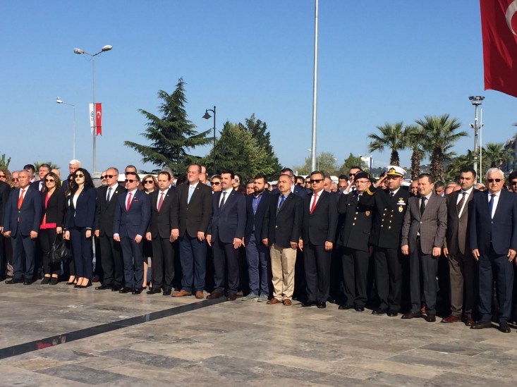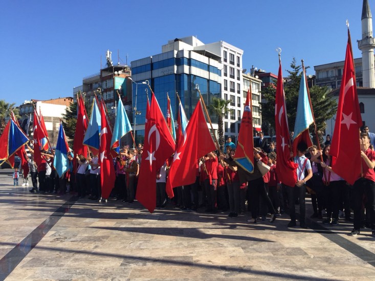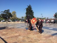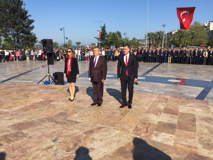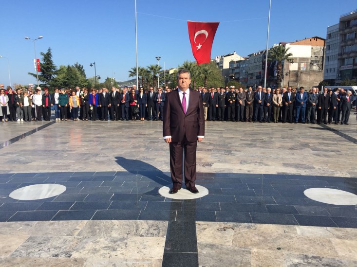 Atatürk Anıtı önünde protokolün katılımı ile düzenlenen tören; İlçe Milli Eğitim Müdürü Numan Korkmaz tarafından Atatürk Anıtına çelenk sunulması, saygı duruşunda bulunulması ve İstiklal Marşının okunması ile sona erdi.