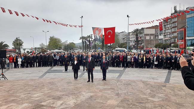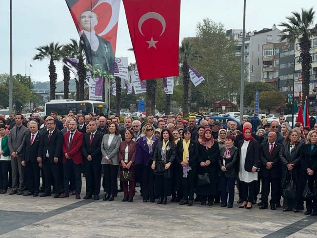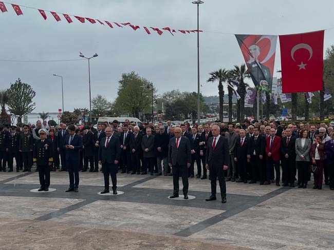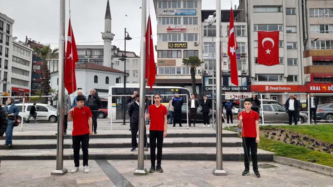 Karadeniz Ereğli Atatürk Anıtı önünde yapılan törende, Karadeniz Ereğli İlçe Milli Eğitim Müdürü Harun Akgül, Atatürk Anıtına Milli Eğitim Müdürlüğü çelengini sunarak, saygı duruşunda bulunulmasının ardından, protokol üyeleriyle İstiklal Marşı’nı okudular.