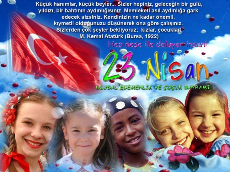 "Yakın tarihimizin en büyük dönüm noktası olan Kurtuluş Savaşımızda, dünyaya yüce önder Atatürk tarafından ezilen uluslara örnek olacak bir ders verilmişti: "Milli egemenlik, kayıtsız şartsız milletindir." Çünkü Osmanlı İmparatorluğu zamanında egemenlik padişahta idi. Padişah ülkeyi istediği gibi yönetirdi. Buna son veren karar 23 Nisan 1920'de ilk Büyük Millet Meclisi'mizin açılmasıdır. Bu gün, ulusun yönetme yetkisini kullanmaya başladığı gündür. Atatürk tarafından bugünün küçükleri, yarının büyüklerinin ulusal egemenliğin nasıl kazanıldığını ve neden kaybedilmemesi gerektiğini hiçbir zaman unutmamaları için çocuklarımıza bayram olarak adanmıştır. Bu duygularla 23 Nisan Ulusal Egemenlik ve Çocuk Bayramı'nı kutlar, tüm çocuklarımıza sevgilerimi sunarım."