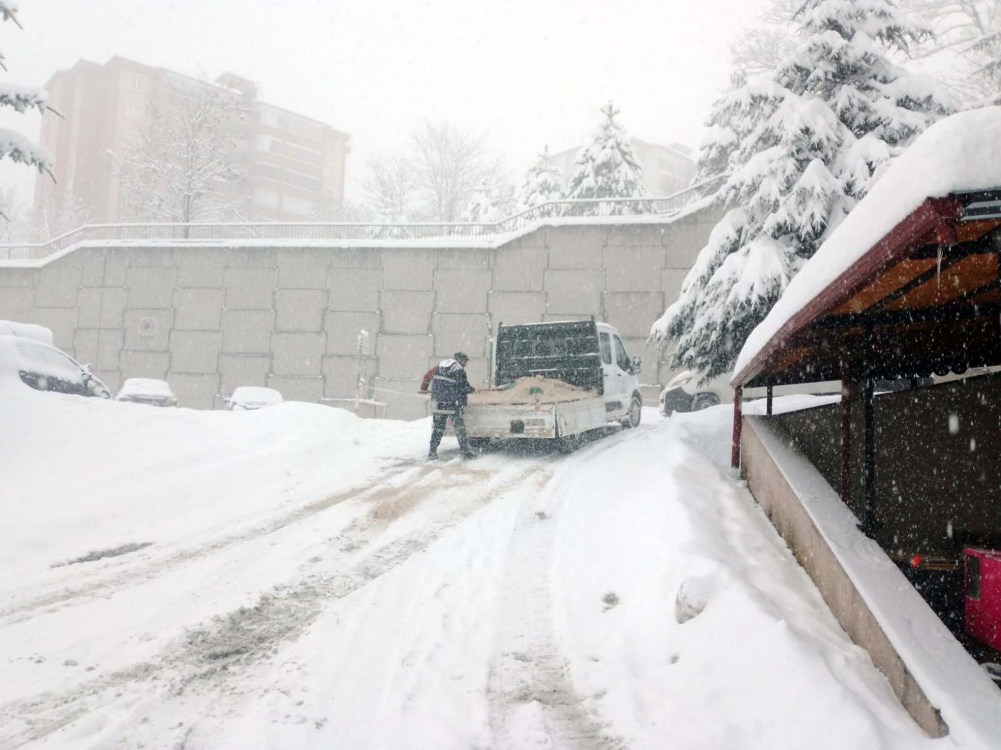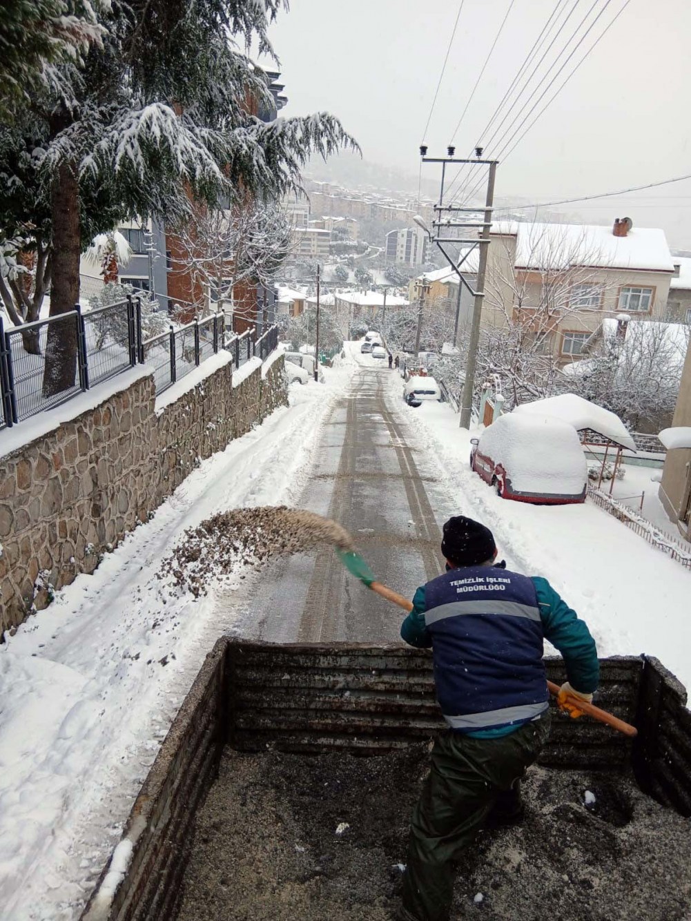Fen İşleri Müdürlüğü’nün organizasyonunda Su ve Kanalizasyon, İtfaiye, Temizlik İşleri ve Zabıta başta olmak üzere bütün birimler, araç, ekipman ve personeliyle seferber olmuş durumda. 24 saat esasına göre yollardan kar küreniyor, tuzlanıyor, yaya kaldırımları temizleniyor.