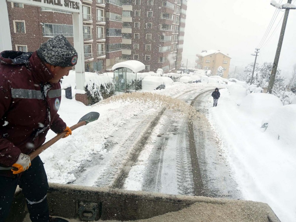 Kdz. Ereğli Belediyesi ekipleri, etkili olan kar yağışına karşı tüm birimleriyle kesintisiz sahada çalışmalarını sürdürüyor.