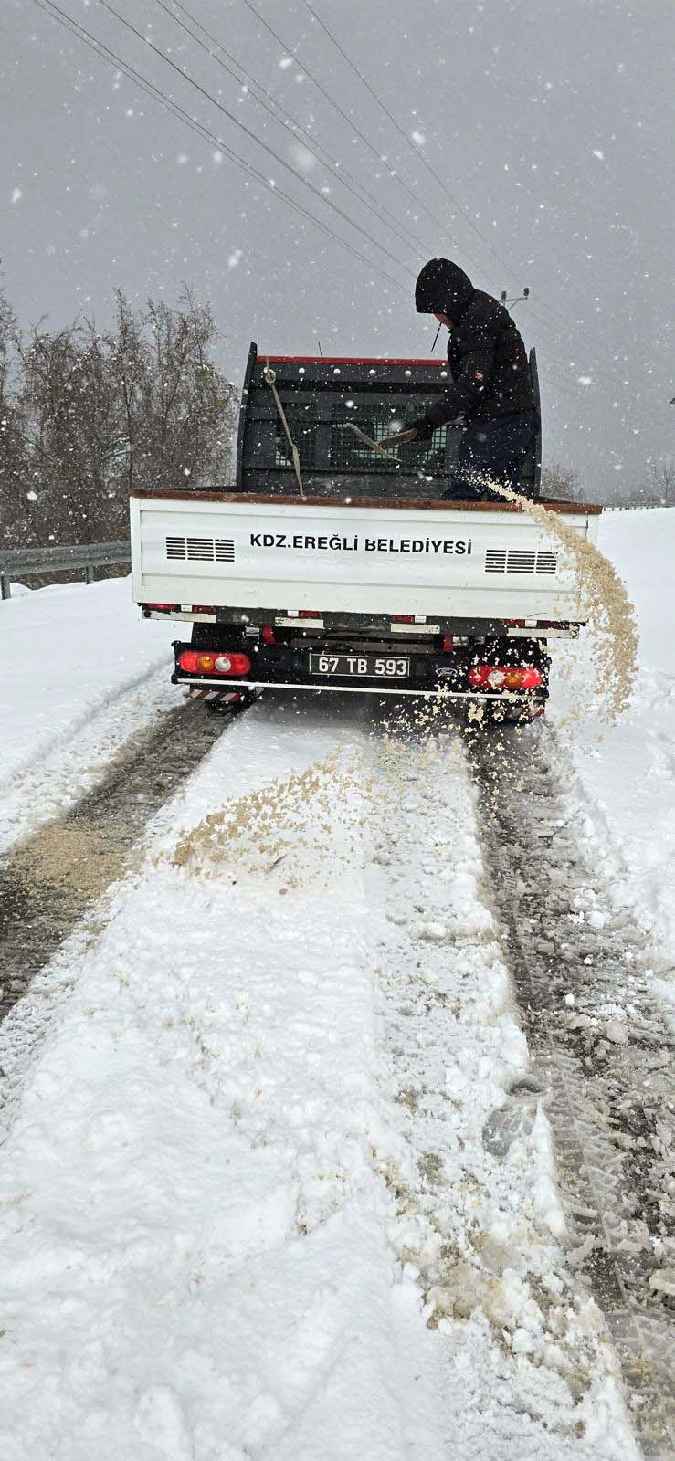 Kdz. Ereğli’de etkili olan kar yağışına karşı seferber olan Kdz. Ereğli Belediyesi tüm birimleriyle 24 saat kesintisiz sahada çalışıyor. Yollardan kar küreniyor, tuzlanıyor, yaya kaldırımları temizleniyor.