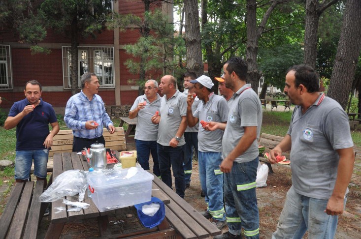 Başkan Uysal, sıcak havaya rağmen dur durak bilmeden mahallelerde asfalt döken işçileri de ziyaret ederek karpuz ikramında bulundu ve tatlı ikramı içinde ilgili müdürlüğe talimat verdi.