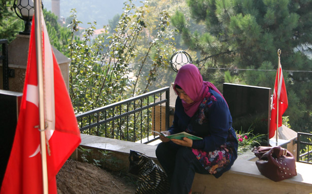 36 yaşındaki Sevim Saraçlı ise, Zonguldak Şehitliği'ndeki şehitlerin mezarlarını tek tek gezerek dua etti.