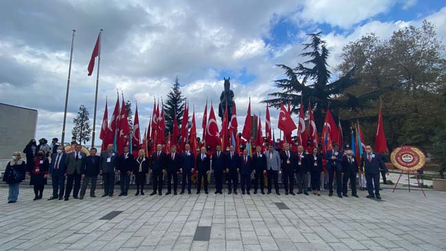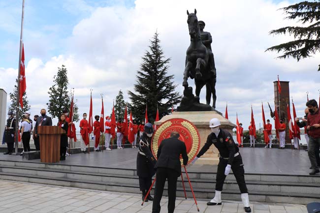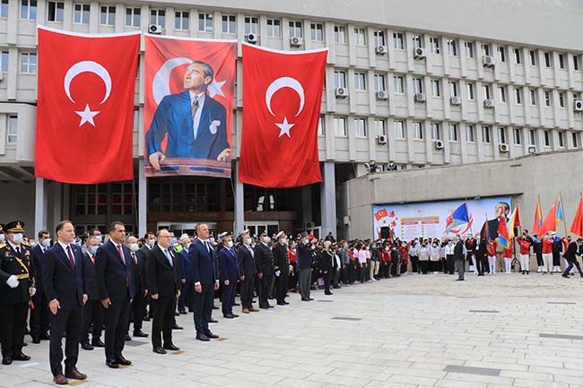 Atatürk Anıtı önünde gerçekleştirilen törene Vali Mustafa Tutulmaz'ın yanı sıra milletvekilleri, Belediye Başkanı ve protokol üyeleri katıldı. Saygı duruşunun ardından İstiklal Marşı'nın okunduğu törende Atatürk Anıtı önüne Valilik ve Belediye Başkanlığı çelenkleri sunuldu.