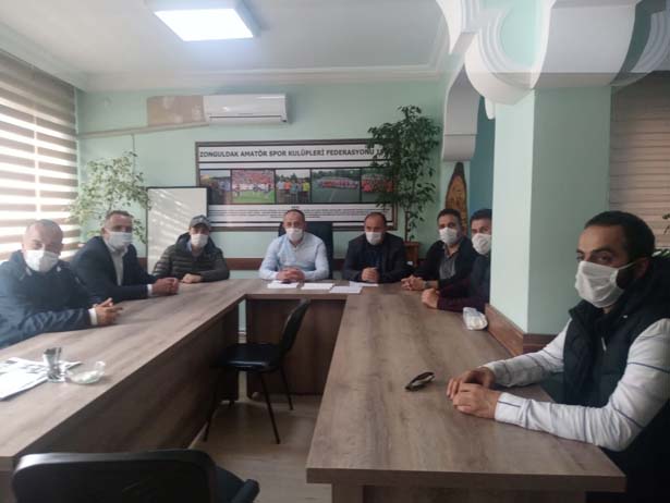 Zonguldak Amatör Spor Kulüpleri Federasyon Başkanı Kemal Demir, Futbol İl Temsilcisi Metin Malkoç ve kulüpler korona virüs nedeniyle devresi tamamlanamayan 2.Amatör Kümenin kaderi için Amatör Spor Kulüpleri Federasyon binasında toplantı yapıldı.