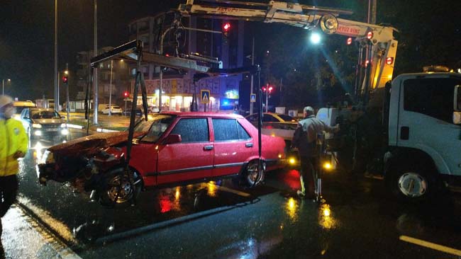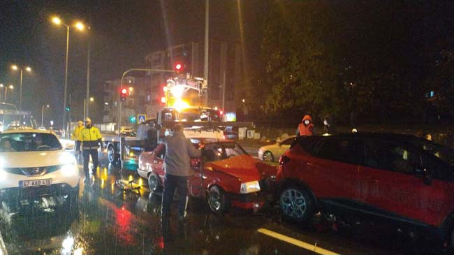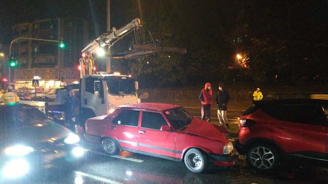 Zonguldak’ın Ereğli ilçesinde yağışlı havanın da etkisiyle zincirleme trafik kazası meydana gelirken 3 araç birbirine girdi.