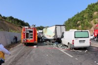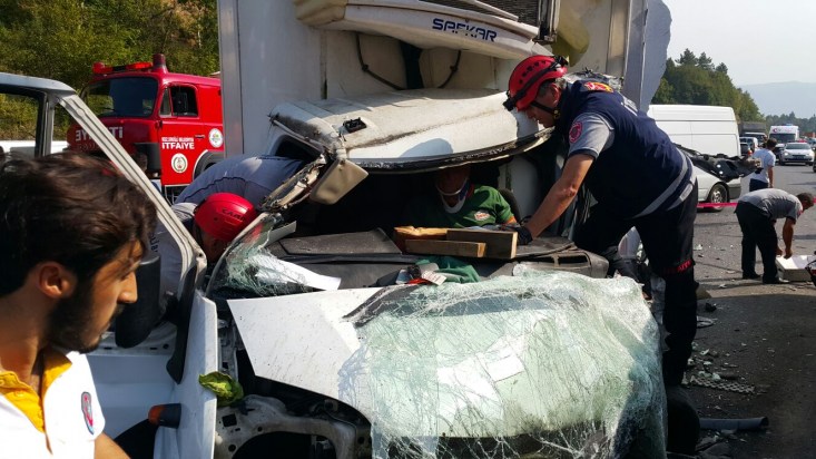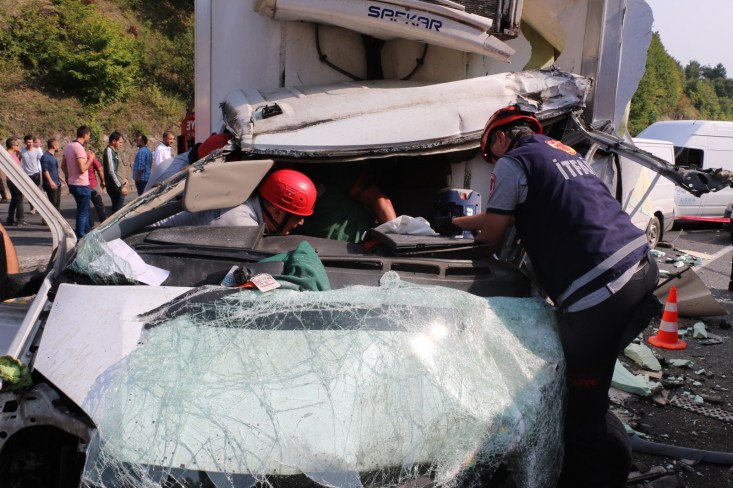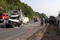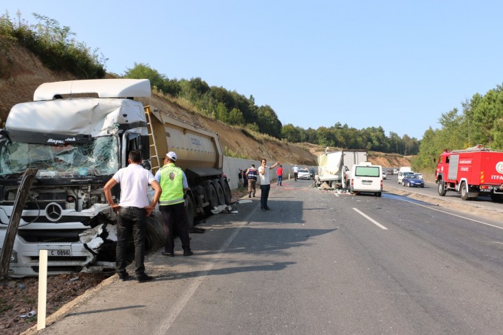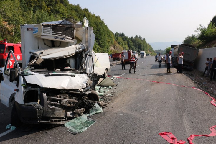 Kaza İstanbul Zonguldak karayolu Soğanlı rampalarında meydana geldi. iddiaya göre Ereğli'den Zonguldak istikametine giden E.Ç. (52) idaresindeki 67 EV 474 plakalı kamyonet karşı yönden gelen S.A.(37) idaresinde ki 27 VJ 085 dorse 27 C 0896 çekici plakalı TIR ile kafa kafaya çarpıştı. Çarpışmanın etkisi ile sürüklenen kamyonet arkadan gelen kamyonete çarparak durabildi. Kazada TIR sürücüsü S.A. ile kamyonette bulunan O.G. (25) yaralandı. Kamyonette sıkışan sürücü E.Ç. ise itfaiye ekiplerinin yaklaşık yarım saat süren çalışmasının ardından araçtan çıkarılarak ambulansa alındı. İlk müdahalelere olay yerinde yapılan yaralılar daha sonra Ereğli Devlet Hastanesine kaldırıldı. Yaralıların Ereğli Devlet Hastanesi tedavisine başlanırken yaralılardan TIR sürücüsü S.A.'nın sağlık durumunun iyi olduğu, kamyonet sürücüsü E.Ç.ın ve O.G.'nun durumunun ağır olduğu öğrenildi. Diğer yandan kaza nedeniyle tek şeritten verilen yol trafiğe kapanırken, çalışma olan diğer yoldan araçların geçişi sağlandı. Kazaya karışan ikinci kamyonet sürücüsü M.E., sürücü E.Ç.'ın karşı şeride geçtiğini, TIR sürücüsü S.A.'nın kaçmasına rağmen kazanın meydana geldiğini ve kayan aracın da kendi aracına çarptığını söyledi. Savcılık kaza ile ilgili soruşturma başlattı.