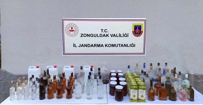 Zonguldak İl Jandarma Komutanlığı ekipleri, sahte ve kaçak alkol ile mücadele kapsamında Gökçebey ilçesinde üç ayrı adrese operasyon düzenledi.