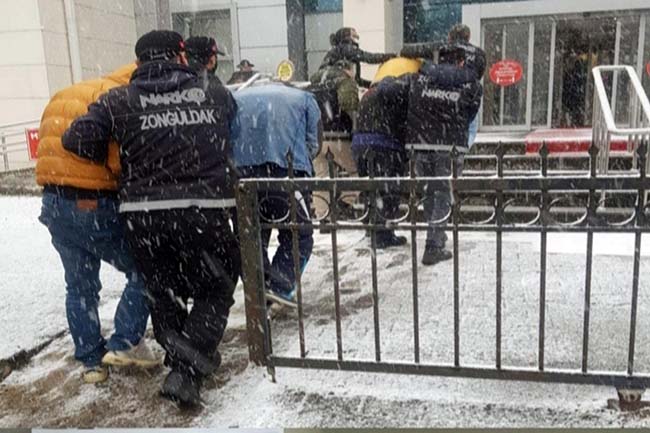 Zonguldak İl Emniyet Müdürlüğü il merkezi ve Kdz. Ereğli ilçesi olmak üzere 9 ve 10 Mart tarihlerinde geniş kapsamlı 3 ayrı narkotik operasyon gerçekleştirdi. İl merkezinde yapılan operasyonda Ö.B. isimli şahsa uyuşturucu madde ticareti suçundan, Kdz. Ereğli ilçesinde B.Ö., F.D. ve C.B. isimli şahıslara uyuşturucu madde kullanmak suçundan işlemler yapıldı. Narkotik Suçlarla Mücadele Şube Müdürlüğü ve Kdz. Ereğli Narkotik Suçlarla Mücadele Grup Amirliği ekiplerince Kdz. Ereğli ilçesinde A.K., Y.S., A.K., O.D., F.D. U.Ö. ve F.Ö. isimli şahıslara uyuşturucu veya uyarıcı madde ticareti yapmak suçuna yönelik işlemler yapıldı. Operasyon kapsamında yaklaşık 85 gram uyuşturucu veya uyarıcı madde, uyuşturucu hap, 1 adet uyuşturucu madde kullanma aparatı ve 2 adet bıçak ele geçirildi. Uyuşturucu veya uyarıcı madde ticareti yapma suç şüphesi ile gözaltına alınan Y.S., A.K., O.D. ve F.Ö. isimli şahıslar Kdz. Ereğli Cumhuriyet Başsavcılığına sevk edildi. Şüphelilerin savcılıktaki sorgusu devam ediyor.