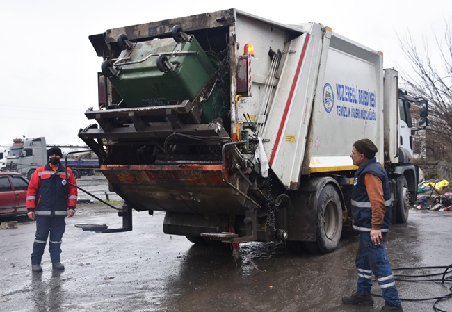 Temizlik İşleri Müdürü Sezgin Okumuş, 59 cadde ve bulvar, 348 sokak ve mesire alanları ile diğer açık alanlardaki 3 bin çöp konteynerini ilaçlı suyla yıkayıp dezenfekte ettiklerini söyledi. Okumuş; “Yıkama aracımızla bazı çöp konteynerlerini sahada yıkıyoruz, bazı çöp konteynerini de şantiyeye getirerek dezenfekte ediyoruz. Yoğun bir kar yağışı dönemi yaşadık. Oluşabilecek kötü kokunun önüne geçmek ve daha sağlıklı bir ortam için çöp konteynerlerimizi dezenfekte ediyoruz” dedi.