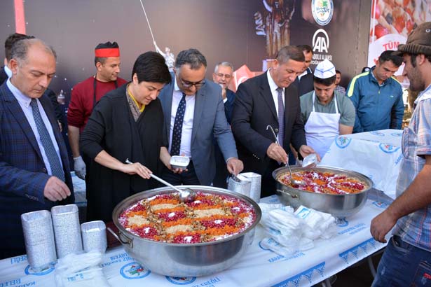 Başkanı Vekili Atay ve Başkan Yardımcıları Alpago, Ağlar ve Bulak, kazanlarda hazırlanan aşureleri kâselere doldurarak vatandaşlara ikram etti. Dağıtım sırasında uzun kuyruk oluşturan vatandaşlar, kalabalık nedeniyle izdihama neden olurken, vatandaşlara yaklaşık 3 bin kişilik aşure dağıtıldı.