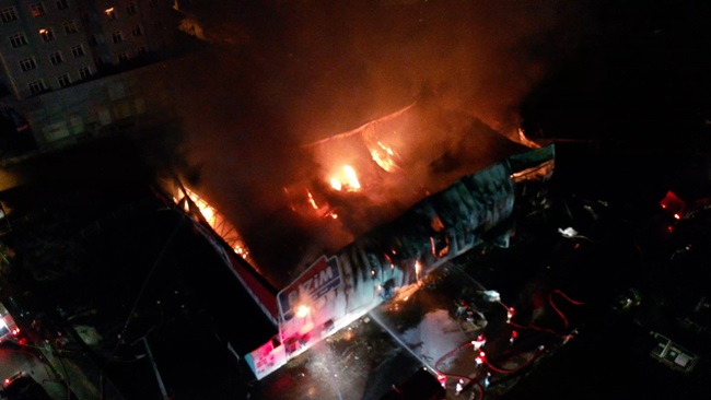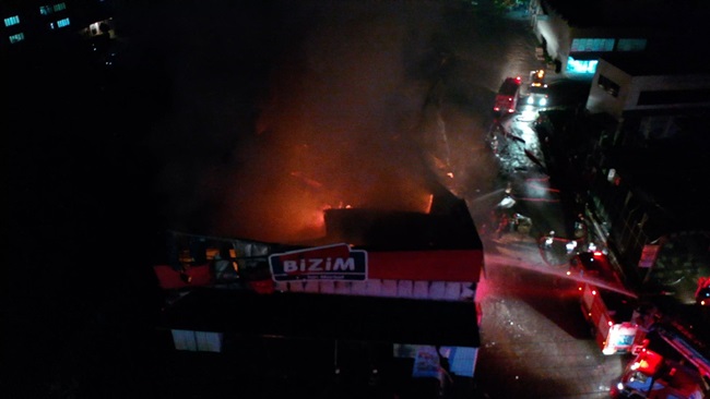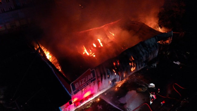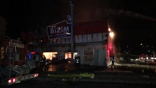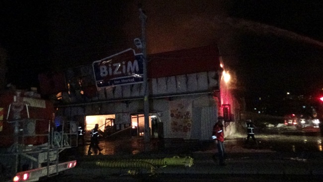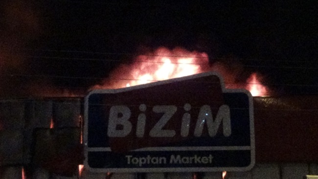 Bizim Toptan Marketin tamamen yandığı olayda yangının çıkış sebebinin araştırıldığı öğrenildi.