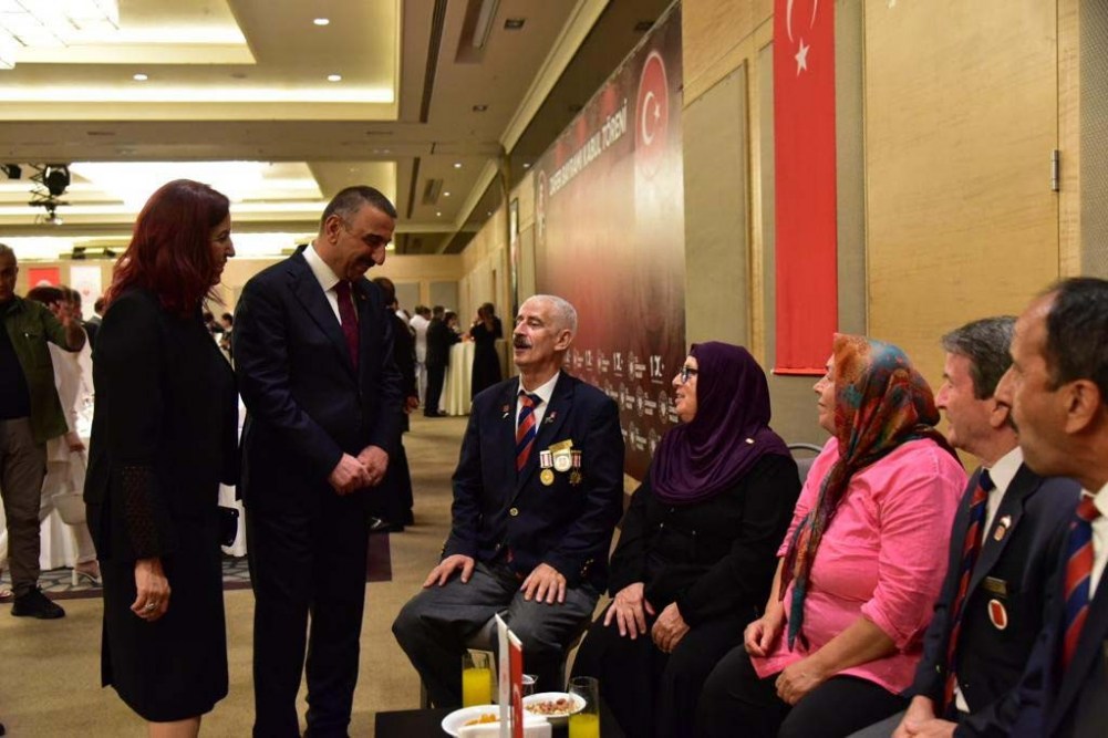 Vali Osman Hacıbektaşoğlu ile eşi Güney Hacıbektaşoğlu Zafer Bayramı Kabul töreninde şehit yakınları ile gaziler ve aileleriyle yakından ilgilenerek sohbet etti.
