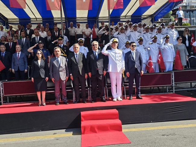 Daha sonra saygı duruşunda bulunuldu ve İstiklal Marşı okundu. Bu sırada Türk Bayrakları göndere çekildi.