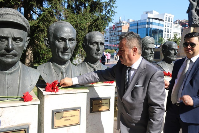 Atatürk Anıtı önündeki törenin sona ermesiyle; protokol üyelerince Müdafaa-i Hukuk Cemiyeti üyelerinden 12 kahramanın büstleri ile şehitliğe karanfil bırakıldı.