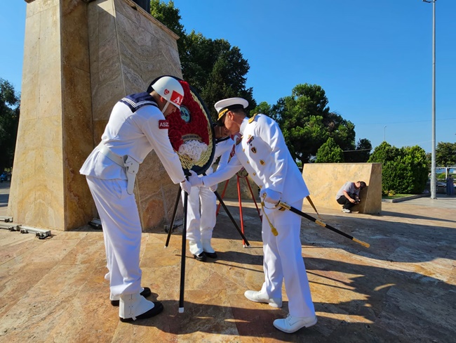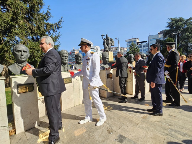Atatürk Anıtı önünde gerçekleştirilen ilk törende Karadeniz Ereğli Kaymakamı Mehmet Yapıcı, Karadeniz Bölge Komutanı Tuğamiral Niyazi Uğur ile Belediye Başkan Vekili Ergün Düzgün tarafından Atatürk Anıtı’na çelenk sunuldu.