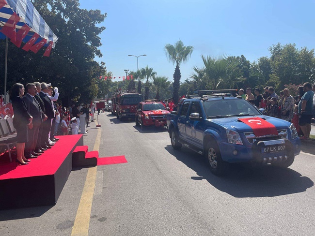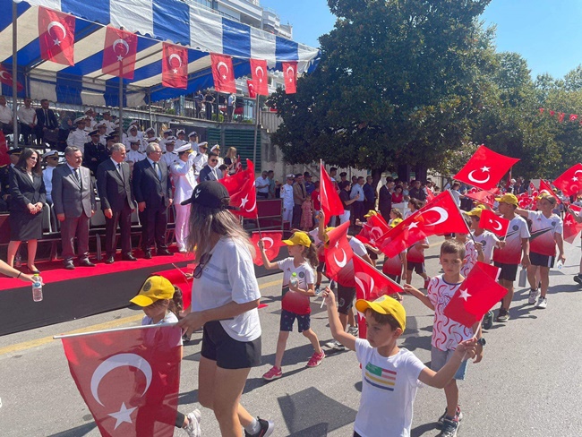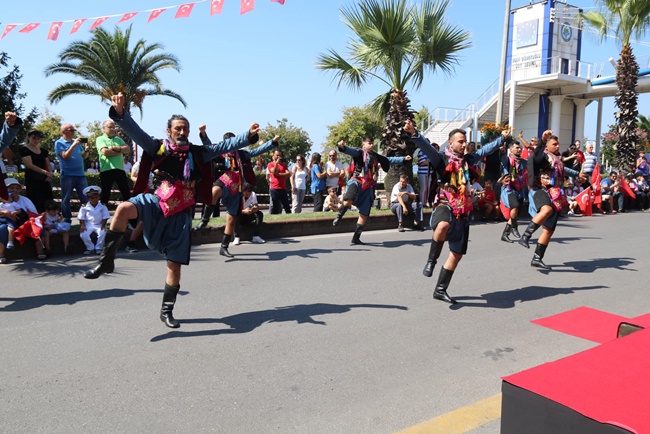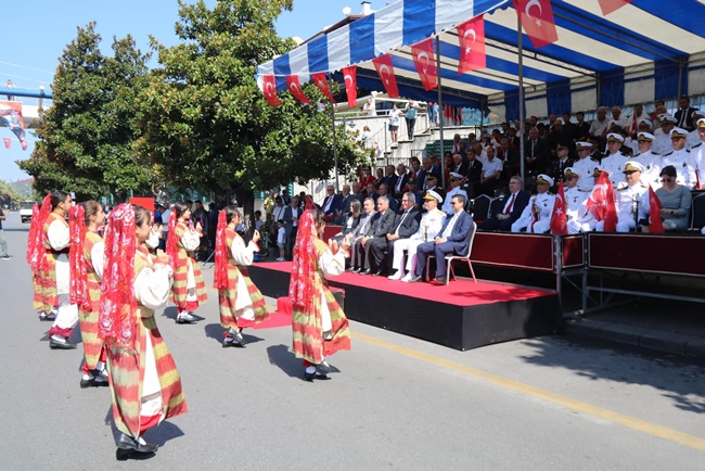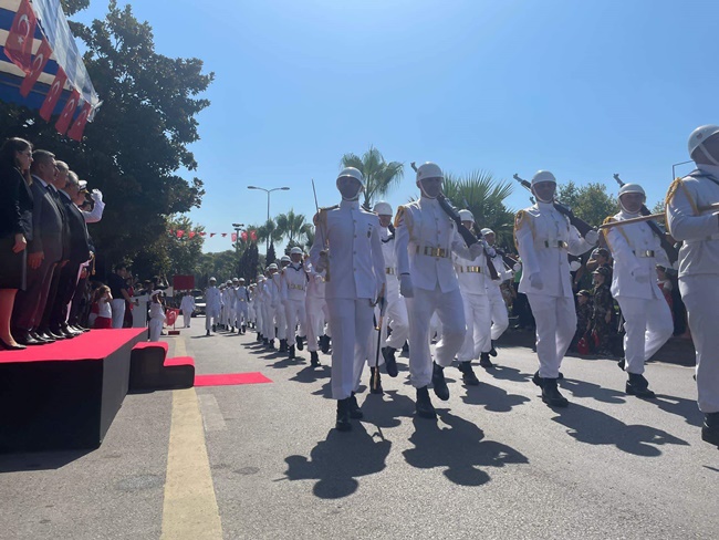 Kaymakam Mehmet Yapıcı’nın saat 10.00'da makamında tebrikleri kabul etmesiye süren kutlamalar daha sonra Atatürk Bulvarı’nda protoklün katılımıyla gerçekleşririlen geçit töreni ile devam etti.