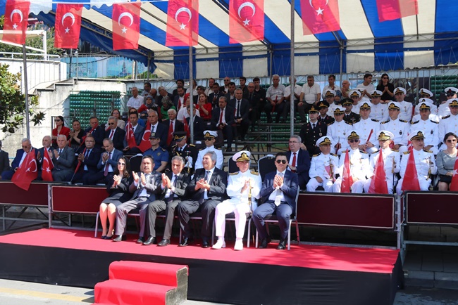 Kaymakam Mehmet Yapıcı, Karadeniz Bölge Komutanı Tuğamiral Niyazi Uğur ve Kdz. Ereğli Belediye Başkanı Ergün Düzgün’ün tören alanında bulunanların bayramlarını kutlayarak başladı, saygı duruşu ve İstiklal Marşı'nın okunması ile devam etti.
