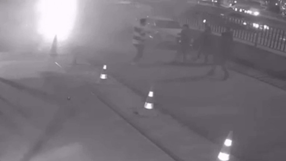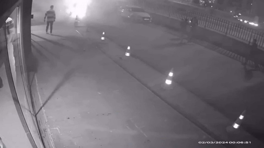 İlk müdahaleleri yapılan yaralılar ambulanslarla hastaneye kaldırılırken, kaza anı bir iş yerinin güvenlik kamerasına yansıdı. Çarpışmanın etkisiyle savrulan aracın demir korkulukları kırarak devrildiği güvenlik kameralarınca kaydedildi. Kazayı gören vatandaşların da yardım amacıyla hızla olay yerine gittikleri görüldü. Çarpışma sebebiyle etrafı toz bulutunun sardığı da güvenlik kamerası tarafından kaydedildi.