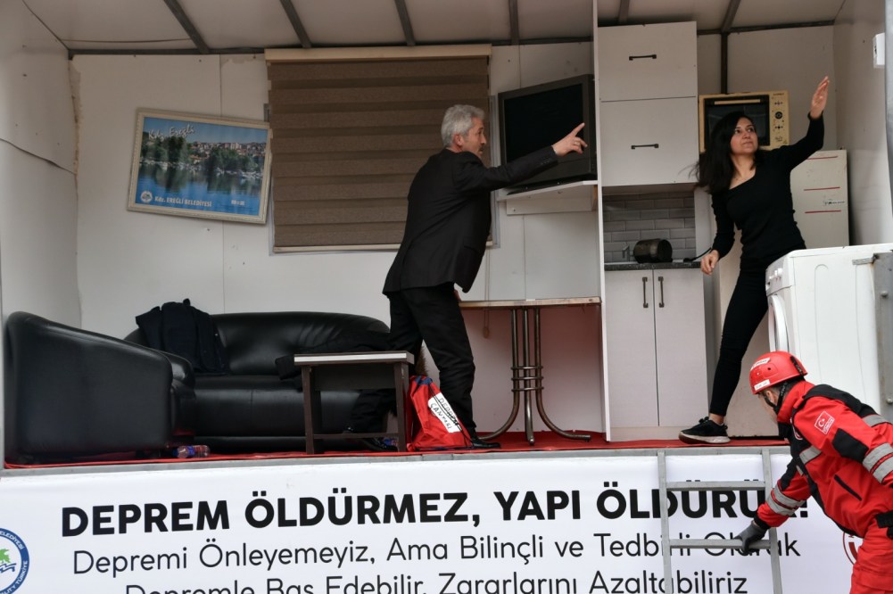 İkinci derece deprem bölgesinde bulunan Kdz. Ereğli’de, halkı deprem konusunda bilgilendirmek için harekete geçen Belediye, 31 mahalleyi kapsayacak şekilde uygulamalı deprem eğitimi ve tatbikatı başlattı. İlk tatbikat Kdz. Ereğli Belediyesi önünde yapıldı.