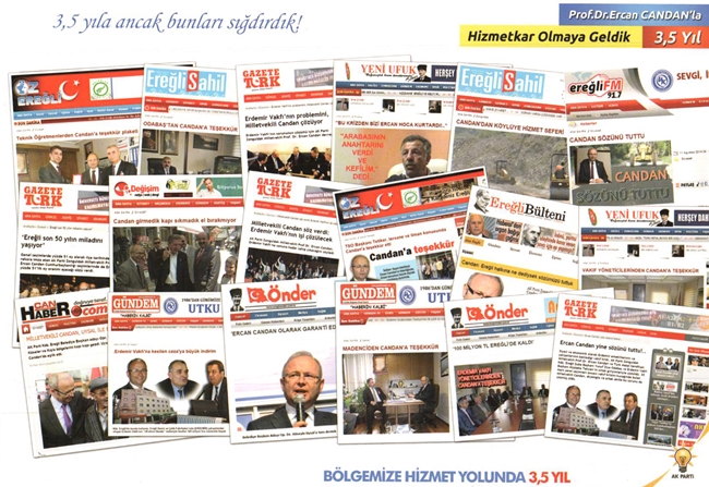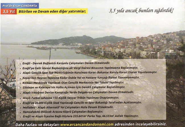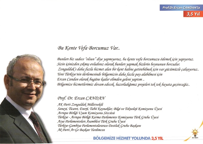 16 sayfadan oluşan seçim kataloğunun sloganı"3,5 YILA ANCAK BUNLARI SIĞDIRDIK!.."olarak belirlendi. Katalog'un açılışında Zonguldak halkına seslenen Milletvekili Candan şunları söyledi: