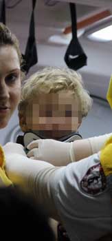 Hemşirenin kucağından bir an olsun inmeyen 4 yaşındaki H.A.K.