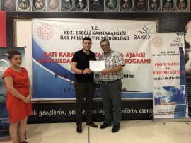 Karadeniz Ereğli İlçe Milli Eğitim Müdürlüğü’nce, Batı Karadeniz Kalkınma Ajansı desteğiyle gerçekleştirilen “Proje Yazma ve Yürütme Eğitimi”nin tamamlanması dolayısıyla sertifika töreni düzenlendi.
