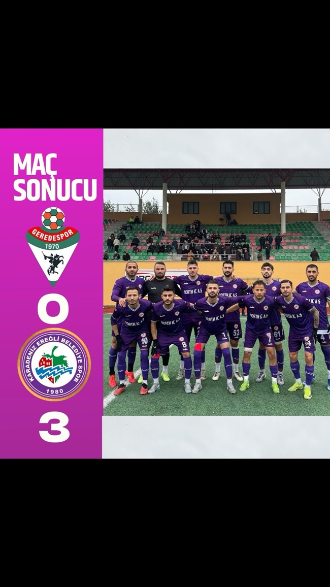 Bölgesel Amatör Ligi’nde mücadele eden temsilcimiz Kdz. Ereğli Belediyespor, 15. hafta maçında deplasmanda soğuk havada konuk olduğu Geredespor’u 3-0 yenerek 41 puan ile ilk yarıyı lider tamamladı.