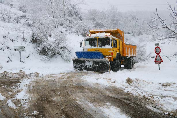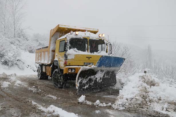 Zonguldak'ta etkili olan kar yağışı sebebiyle ulaşıma kapanan 43 köy yolu için ekiplerin