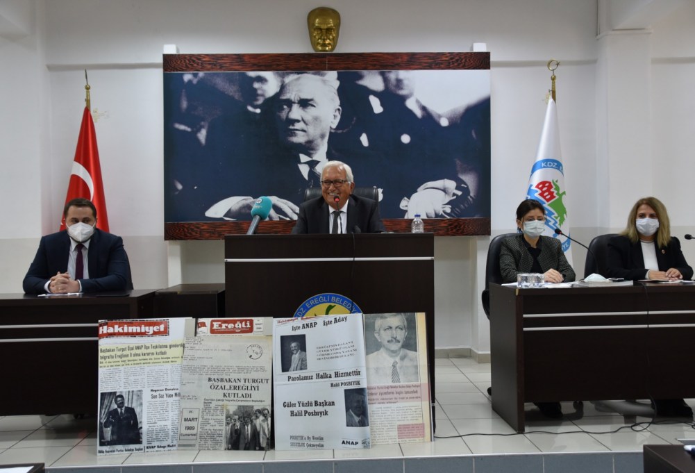 Belediye Başkanı Halil Posbıyık toplantıda yaptığı gündem dışı konuşmada, Koronavirüs salgınında hayatını kaybedenlere rahmet diledi. Meclis üyelerinden de hastalığa yakalananlar olduğunu belirten Posbıyık, kendilerine ve tüm hastalara şifa dilediğini belirtti.Başakan Posbıyık gündem dışı konuşmasında ayrıca Ereğli’nin 45 yıldır süren il olma serüveni hakkında da çarpıcı açıklamalarda bulundu.