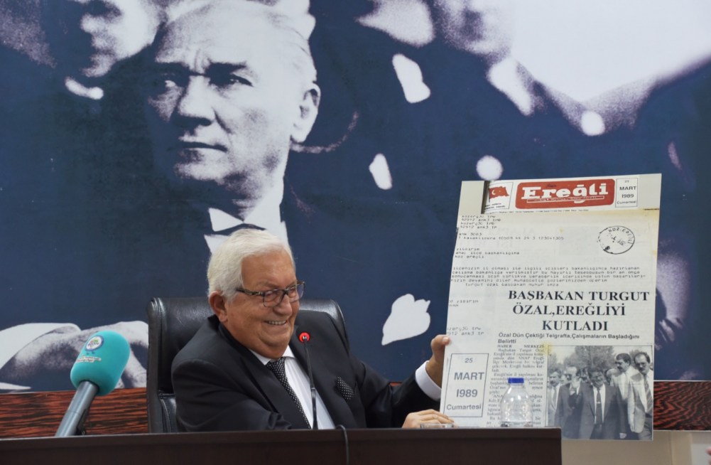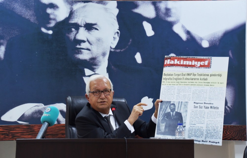 1989 yılında Ereğli’nin il olma fırsatını yakalamıştık. O seçimde belki vatandaşlara biz iyi anlatamadık. 1989 seçimleri Ereğli’nin kırılma noktasıdır. Ekonomik, siyasal, sosyal yönden Ereğli’nin kırılma noktasıdır. ANAP’tan o yılda girdiğim seçimleri kazansaydık, Turgut Özal Ereğli’yi il yapacaktı. İçişleri ve Çalışma Bakanlığı’nda işlemler başlamıştı. İşte bunlar Özal’ın telgrafları.