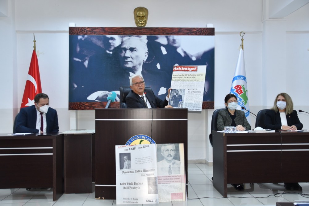 Gündem dışı konuşmasında, Ereğli’nin il olma mücadelesine değinen Posbıyık, 80’li yıllarda başlayan süreci o günün gazete kupürleriyle anlattı. Posbıyık, “Ereğli İl olsun dediğimizde bize kızanlara sesleniyorum. İl olma talebimiz sadece bugünün meselesi değil” vurgusu yaptı.