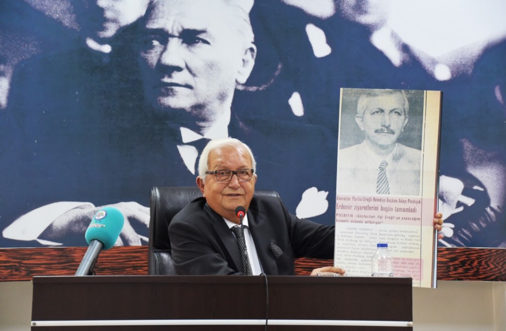“Sizi gerilere getirmek istiyorum, gündeme geçmeden önce. Nostalji yapmak istiyorum. Benim ilk başkan adaylığım 1989 yılındaydı. Benim için ANAP’tan CHP’ye geçti, derler; yanlış bilgi tabii ki. Basın mensupları da yanlış biliyor. Ben CHP’de gençlik yıllarımda büyük gayretler gösterdim, gençlik kolları başkanlığı yaptım. 68 yılında talebeyken bu çalışmalarım başladı. Yerel basında ‘Talebe Gözüyle’ diye köşem vardı. Yazarlık yapardım üniversitede okurken. 1971 yılında Rahmetli Dündar Güçeri zamanında Ereğli Belediyesi’nde Fen işleri Müdürü olarak işe başladım. Sosyal bir yapım vardı, hareketliydim. Halk tarafından seviliyorduk. Ama nedense CHP’de bir türlü bir noktaya getirmiyorlardı. Allah nur içinde yatırsın Ereğli’ye büyük hizmetleri var saygıyla anıyorum eski Başkanımız biraz hareketli olduğumuz için pek desteklemiyordu. Meclis üyeliğine adaylığımı koyuyordum; 1. sıraya yazar diyordum, son sıraya gidiyordum; iyice küsmüştüm yani.
