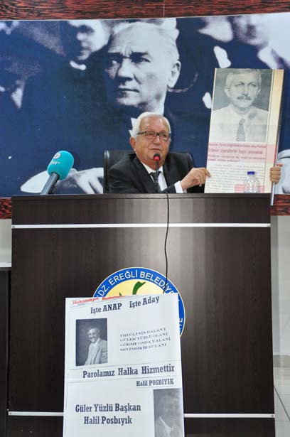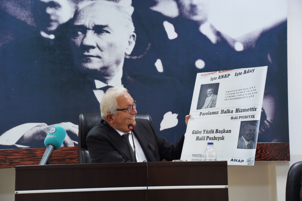 O yıllarda biz gençler arasında da büyük bir çaba vardı il olmak için. Kendimizi kilitlemiştik il olma noktasında. Bu lafı duyunca dondum kaldım. Çok heyecanlandım, şaşırdım, beni kalbimden yakalamıştı. O anı hiç unutmuyorum. Bu, Ereğli’nin gelişmesi demekti. Devletten alınacak ödenekler Ereğli’ye gelecekti. Ereğli ve köylerine, beldelerine büyük hizmetler götürülebilecekti. Zonguldak’tan, vilayetten Ereğli’ye hiçbir şey vermiyorlardı. Diğer ilçelere beldelere gidiyordu. Ereğli mahrum kalıyordu. Onun için de köylerimizde gelişme yoktu. Bu noktada artık kaçınılmaz olarak ‘evet’ dedim. Eğer il yapma sözünü verirseniz ben adaylığımı koyarım, dedim. İçişleri Bakanı Mustafa Kalemli'yi çağırdı. Ona talimat verdi, ‘İlan edin’ dedi. ‘Halil Posbıyık Belediye Başkanlığını kazandığı takdirde Ereğli il olacaktır’ diye ilan edildi. Beş ana konu üzerinde durduk. Su sorunu, doğalgazın getirilmesi, toplu konut yatırımları, işsizlik konusunda çözüm arayışları, Ereğli-Düzce karayollarının bakım konuları…