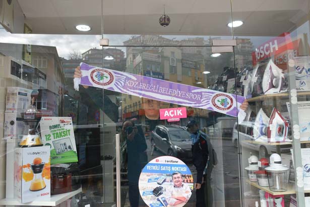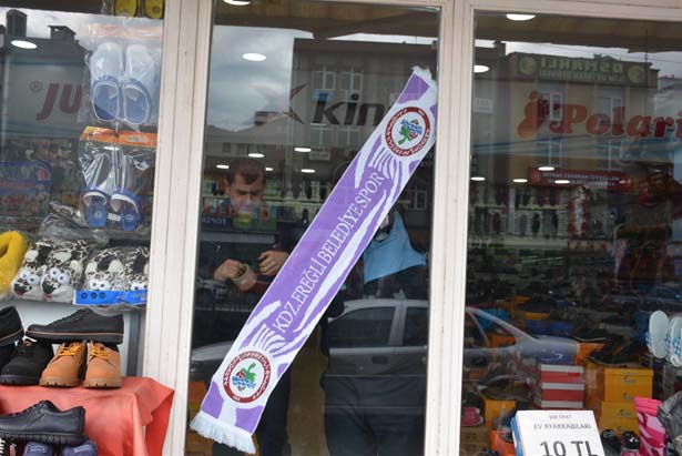 davet edildi. Bir çok esnaf aldıkları atkıları dükkanlarının camlarına asarak