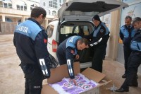 Zabıta Müdürlüğüne bağlı personeller tarafından esnaflara hediye edilirken,