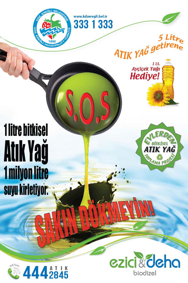 Kdz. Ereğli Belediye Başkanı Halil Posbıyık belediye olarak konutlarda oluşan bitkisel atık yağların toplanması için Ezici&Deha Biyodizel ile birlikte başlatılan kampanya kapsamında 5 litre atık yağ getirenlere 1 litre ayçiçeği yağı kampanyası başlatıldığını ifade etti.