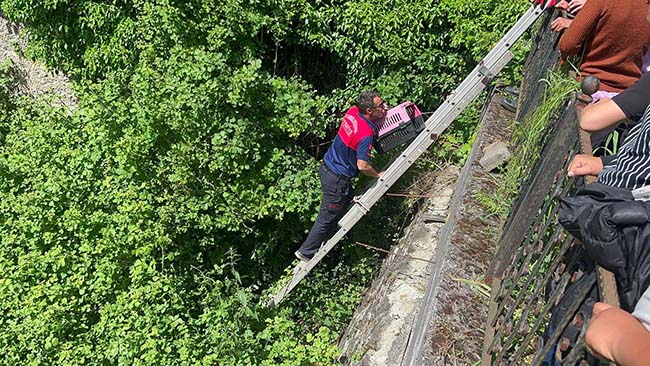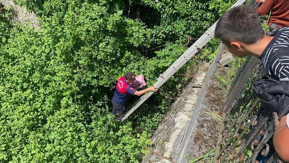 5 metrelik yükseklikten çalılık alana düşen yavru köpekleri olay yerine ulaşan itfaiye ekipleri kısa sürede bahçeye inerek merdiven marifetiyle kurtardı. Yavru köpekler daha sonra annesinin yanına bırakıldı.